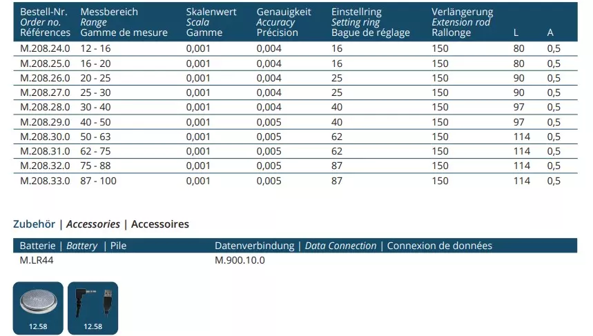 - Ablesung: 0.001mm