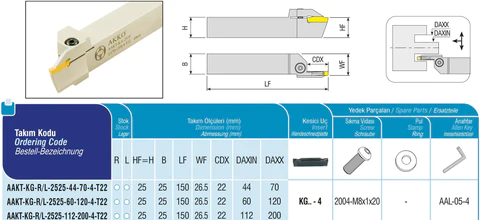Produktinformationen "AKKO-Axial-Stechhalter, kompatibel mit Korloy-Stechplatte KG..-4 Schaft-ø 25x25, Einstechbereich ø 44 - ø 70 mm, rechts"