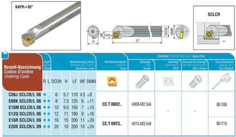 Produktinformationen "Akko-Bohrstange mit Hartmetallschaft ø 20 mm für CC.T 09T3..links, 95° Anstellwinkel, mit Innenkühlung"