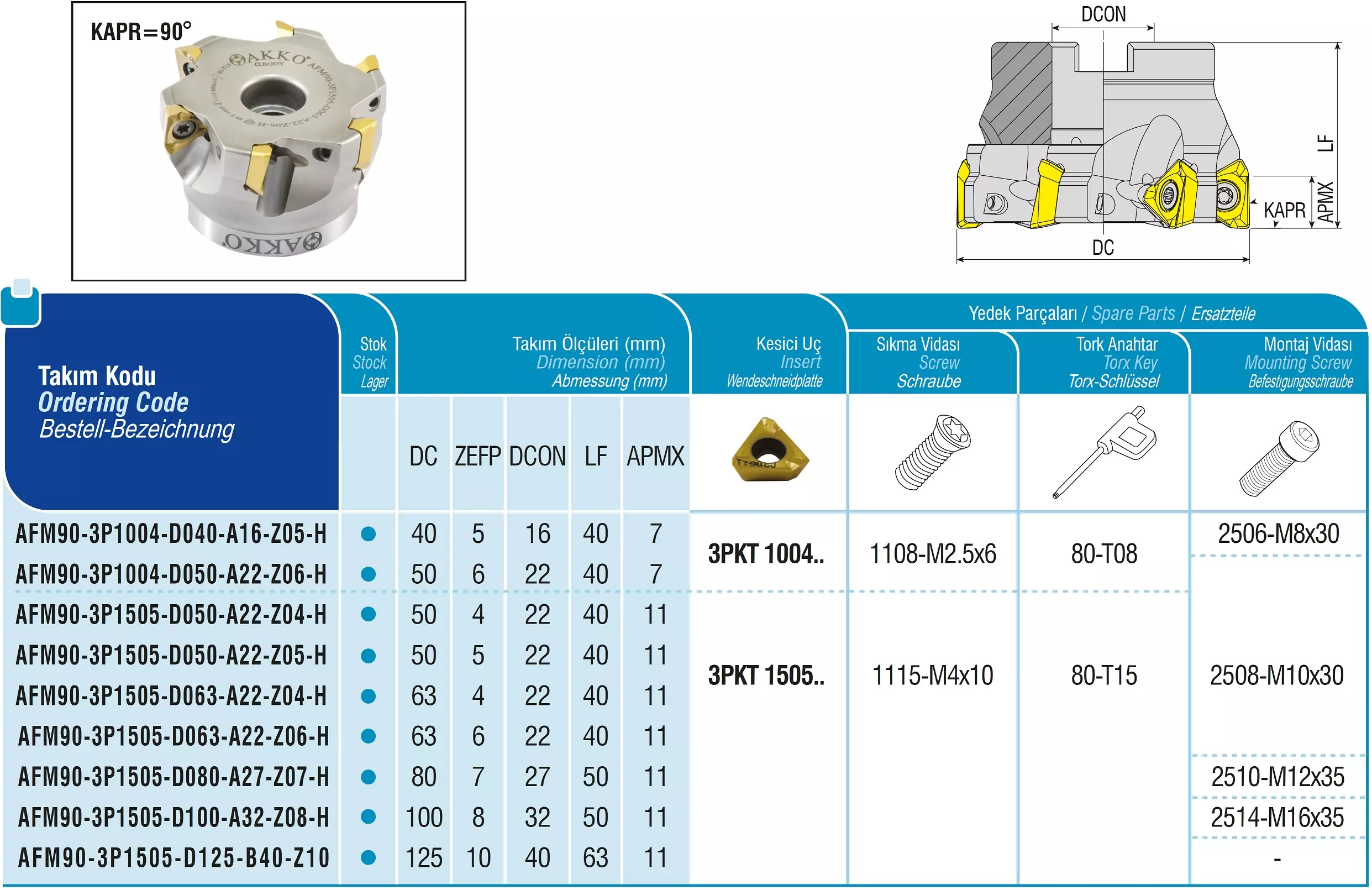 Produktinformationen "AKKO-Eckmesserkopf ø 50 mm, 90° Anstellwinkel, kompatibel mit Taegutec 3PKT 1004.. Schaft-Ausführung ø 22 mm (Typ A), mit Innenkühlung, Z=6"