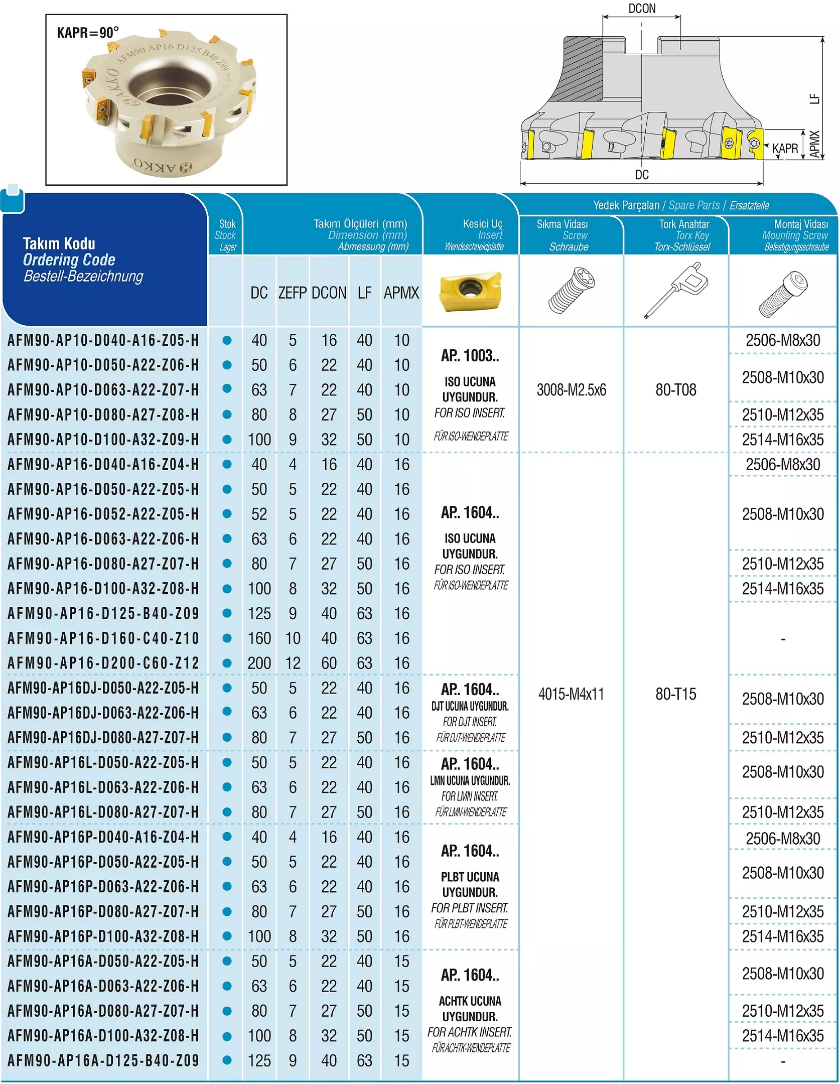 Produktinformationen "AKKO-Eckmesserkopf ø 80 mm, 90° Anstellwinkel, kompatibel mit Palbit AP.. 1604.. Schaft-Ausführung ø 27 mm (Typ A), mit Innenkühlung, Z=7"