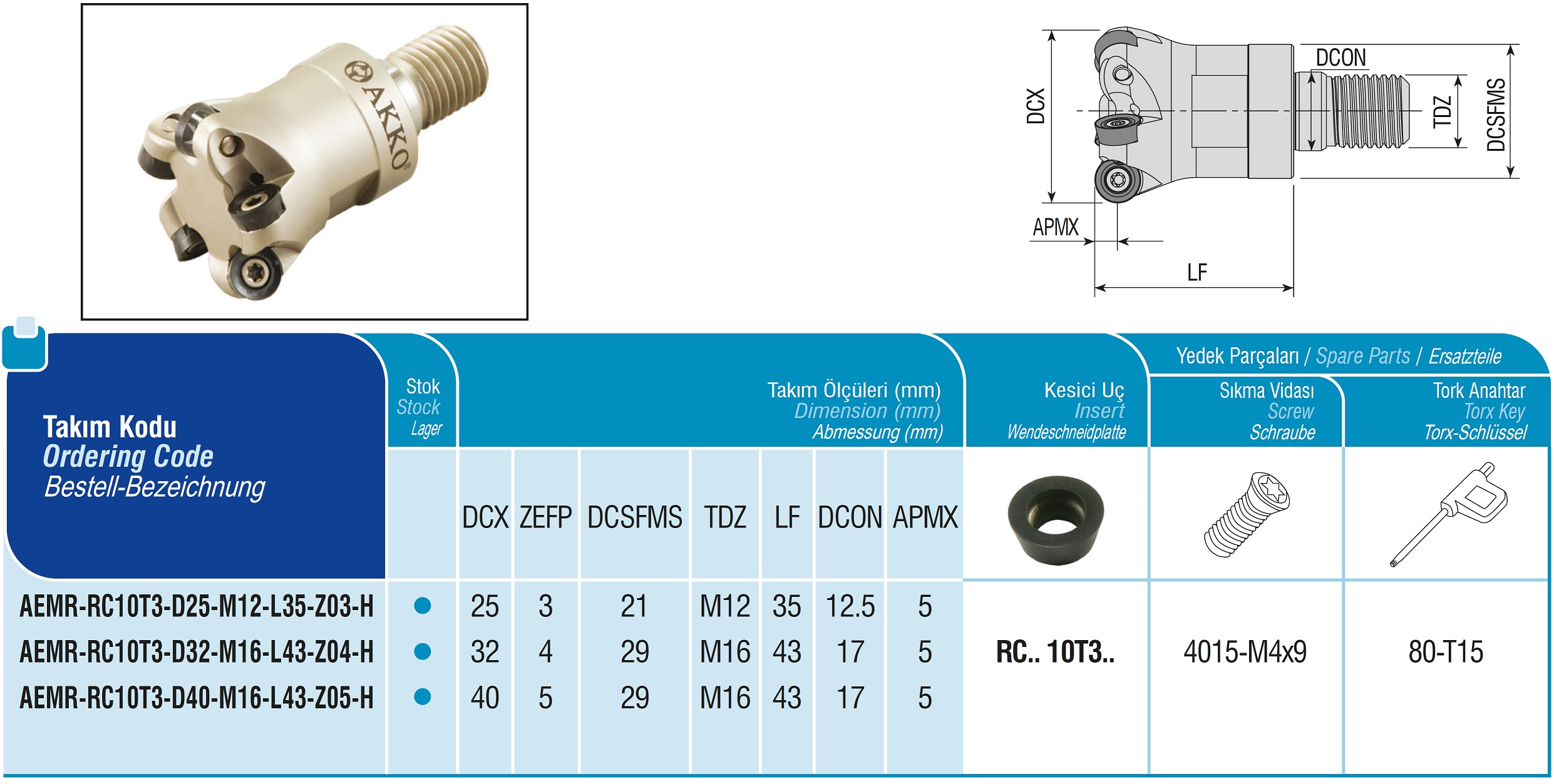 Produktinformationen "AKKO-Einschraubfräser ø 25 mm, für Rundplatten, kompatibel mit ZCC RC.. 10T3.. Gewindeschaft M12, mit Innenkühlung, Z=3"