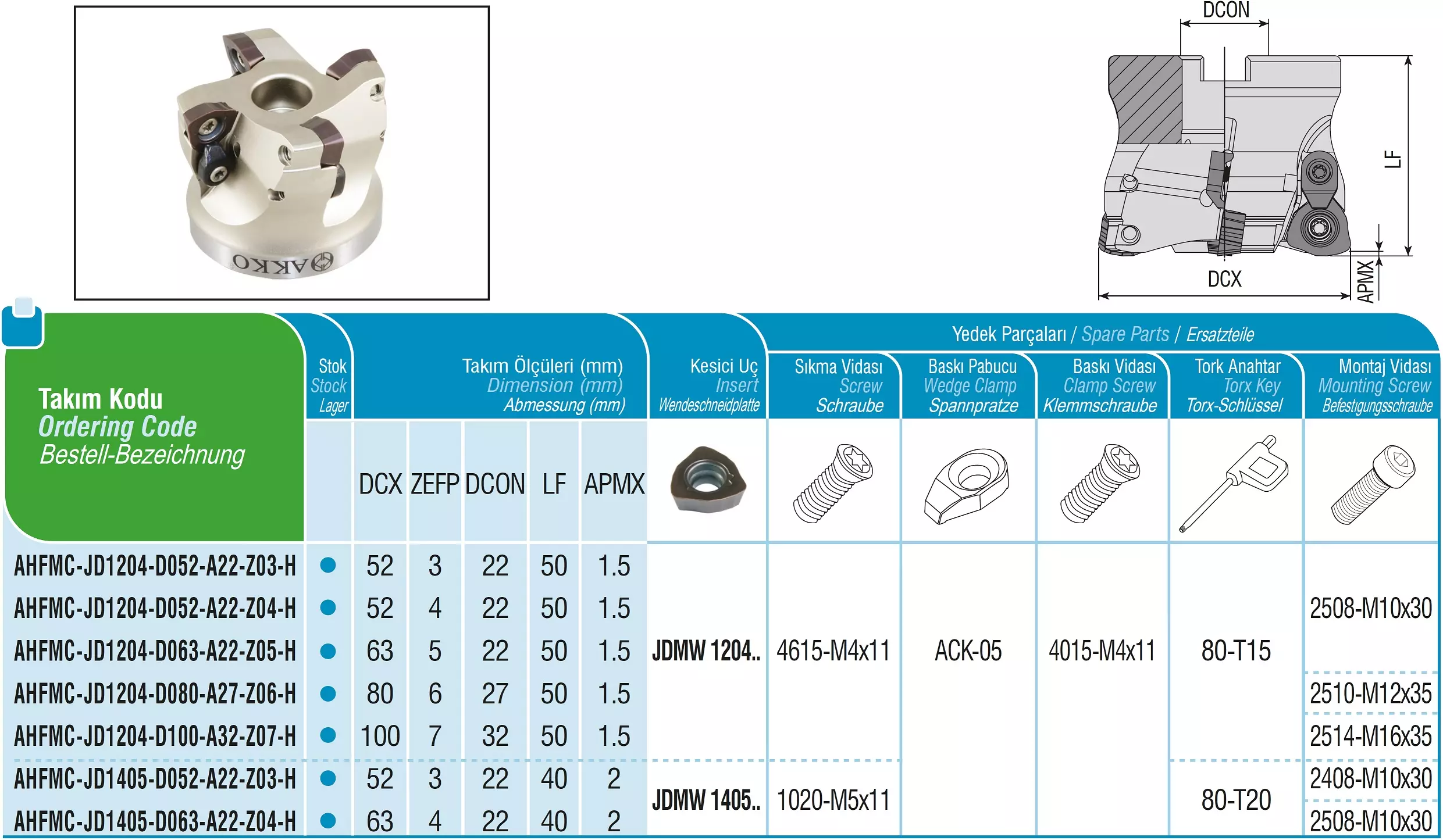 Produktinformationen "AKKO-Hochvorschub-Messerkopf für Wendeplatten, ø 63 mm, kompatibel mit Mitsubishi JDMW 1405.. Schaft-Ausführung ø 22 (Typ A), mit Innenkühlung, Z=4"