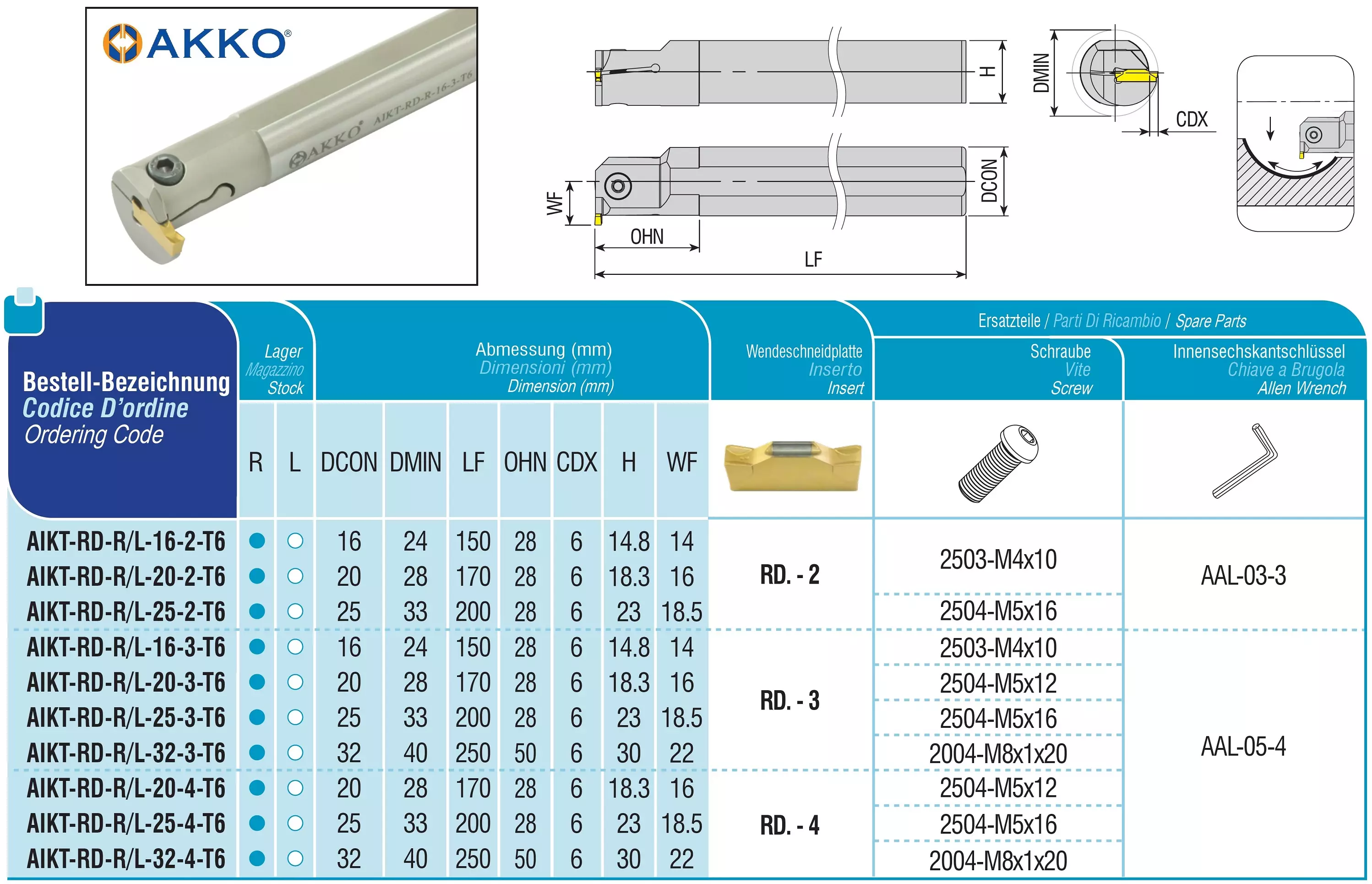 Produktinformationen "AKKO-Innen-Stechhalter, kompatibel mit Taegutec-Stechplatte RD.-4 Schaft-ø 32, ohne Innenkühlung, links"