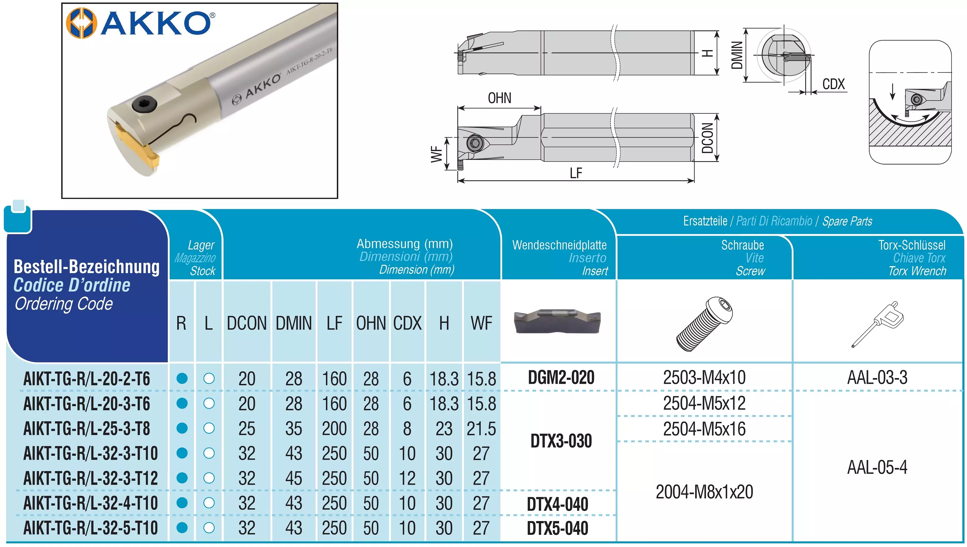 Produktinformationen "AKKO-Innen-Stechhalter, kompatibel mit Tungaloy-Stechplatte DGIM2-020 Schaft-ø 20, ohne Innenkühlung, links"