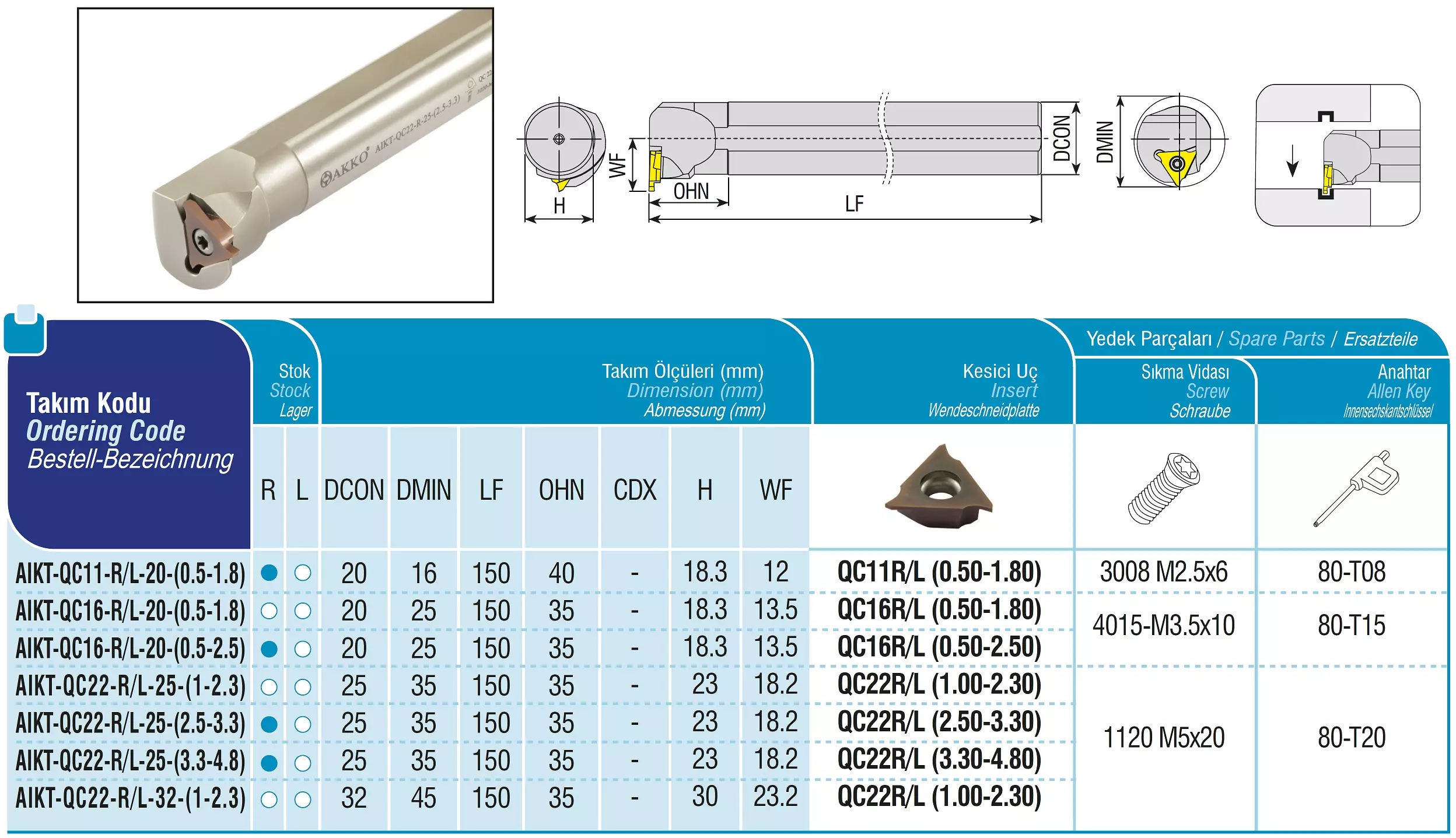 Produktinformationen "AKKO-Innen-Stechhalter, kompatibel mit ZCC-Stechplatte QC22R (1.00-2.30) Schaft-ø 32, ohne Innenkühlung, rechts"