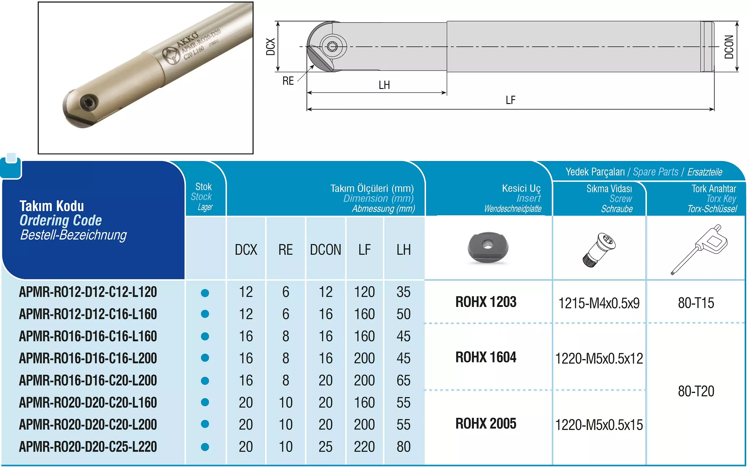 Produktinformationen "AKKO-Kugelkopierfräser für Wendeplatten, ø 12 mm, kompatibel mit ZCC ROHX 1203 Schaft-ø 12, ohne Innenkühlung"