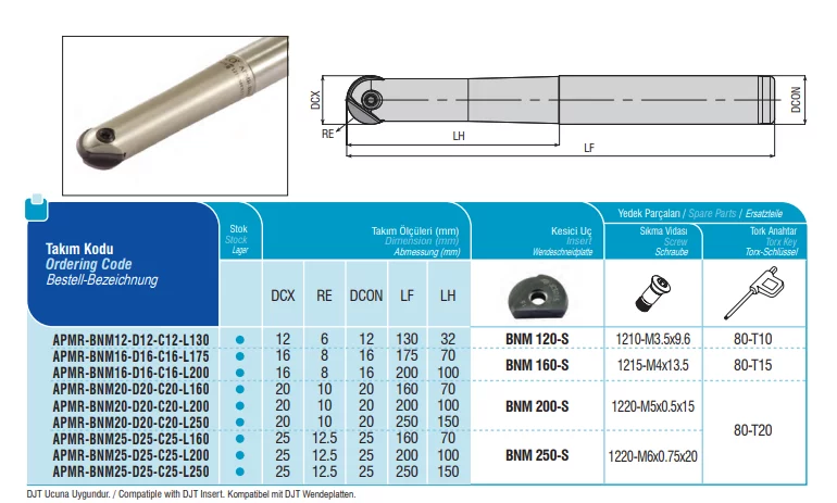 Produktinformationen "AKKO-Kugelkopierfräser für Wendeplatten ø 25 mm, kompatibel mit Dijet BNM 250-S Schaft-ø 25, ohne Innenkühlung, Z=4"