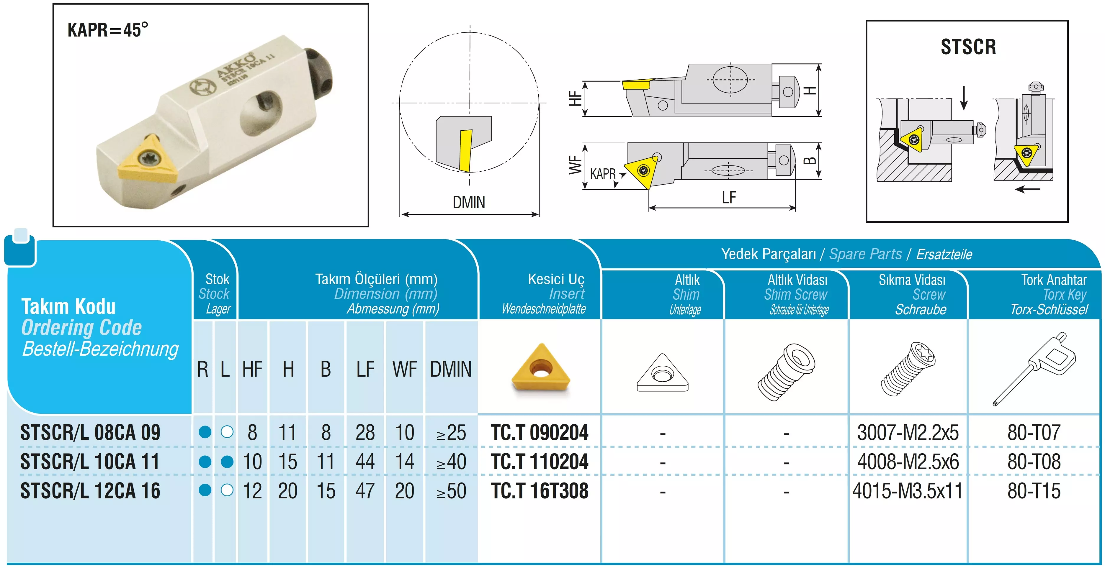 Produktinformationen "AKKO-Kurzdrehhalter für ISO-WSP TC.T 110204 links, 45° Anstellwinkel"
