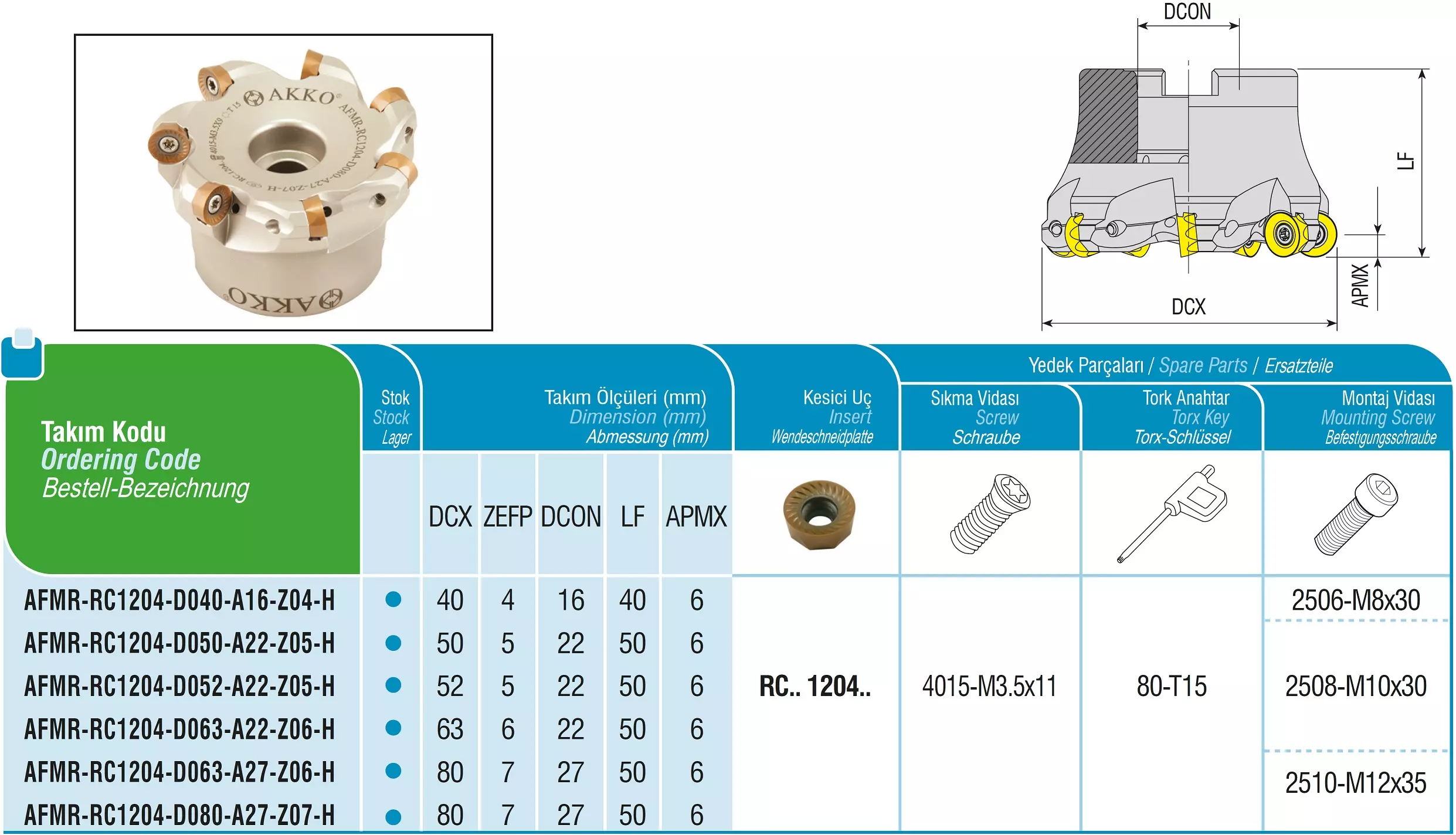 Produktinformationen "AKKO-Messerkopf für Rundplatten, ø 63 mm, kompatibel mit Sandvik RC.. 1204.. Schaft-Ausführung ø 22 mm (Typ A), mit Innenkühlung, Z=6"