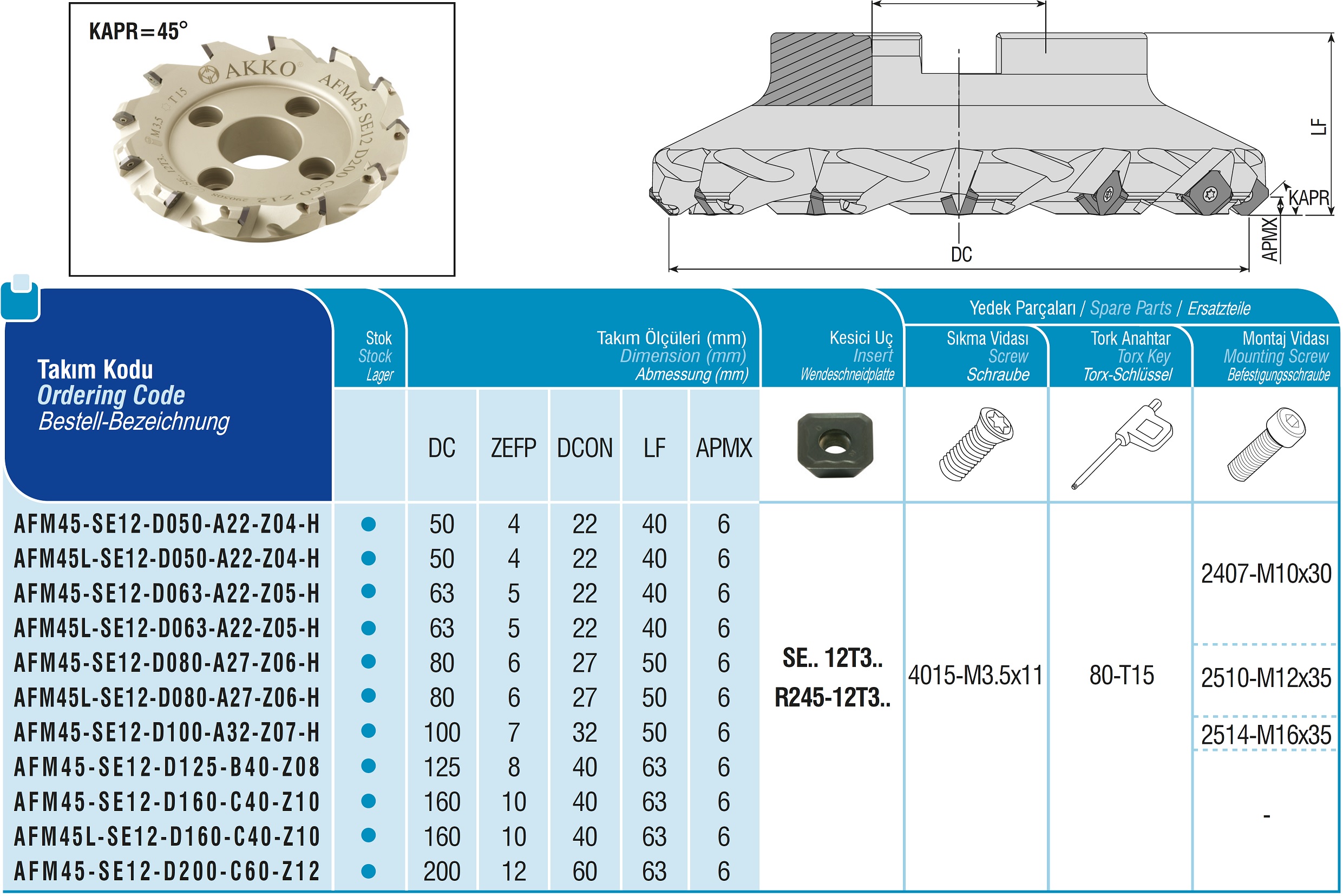 Produktinformationen "AKKO-Planmesserkopf ø 63 mm, 45° Anstellwinkel, kompatibel mit Sandvik R245-12T3 und ZCC SE.. 12T3.. Schaft-Ausführung ø 22 mm (Typ A), mit Innenkühlung, Z=5"