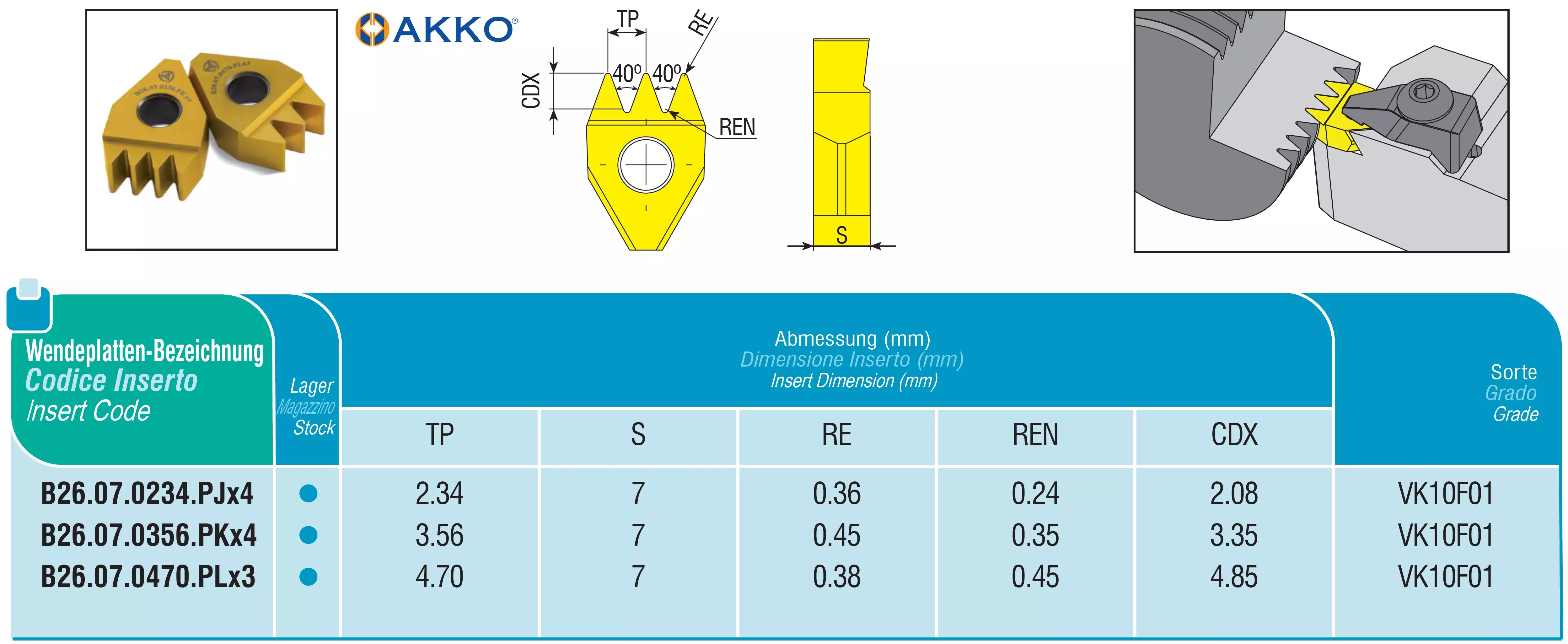 Produktinformationen "AKKO-Poly-V-Mehrzahn-Einstechplatte aus Hartmetall, TP = 3.56 mm, Plattenstärke S = 7 Hartmetallsorte VK10F01 (beschichtet)"