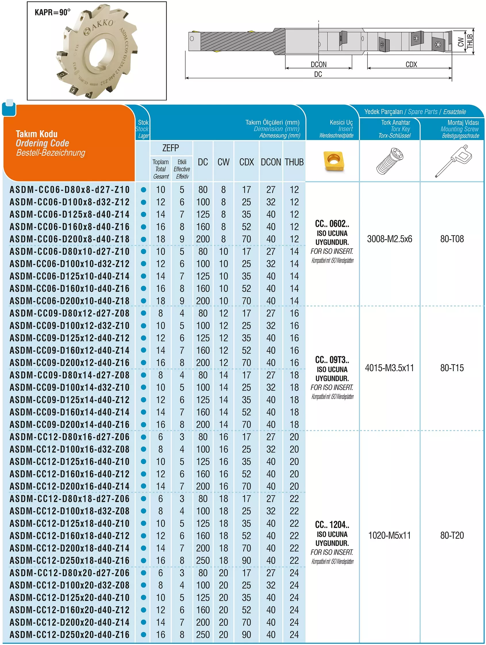 Produktinformationen "AKKO-Scheibenfräser ø 250 mm, Werkzeugbreite 20 mm, kompatibel mit ISO-WSP CC.. 1204.. Z=16 (Z effektiv = )"