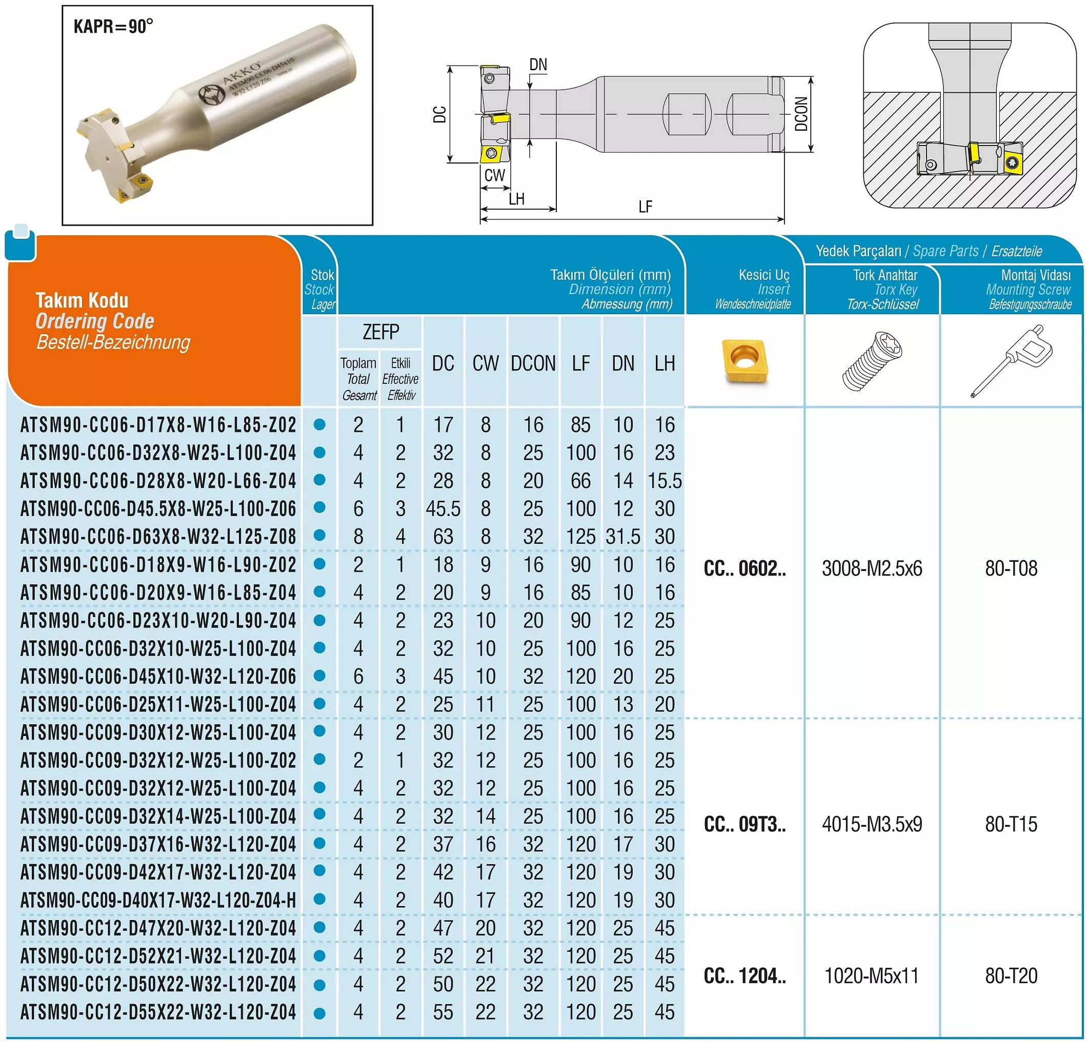Produktinformationen "AKKO-T-Nuten-Fräser ø 32 mm, Nuthöhe 8 mm, für ISO-WSP CC.. 0602.. Schaft-ø 25, Z=4 (Z effektiv = 2)"