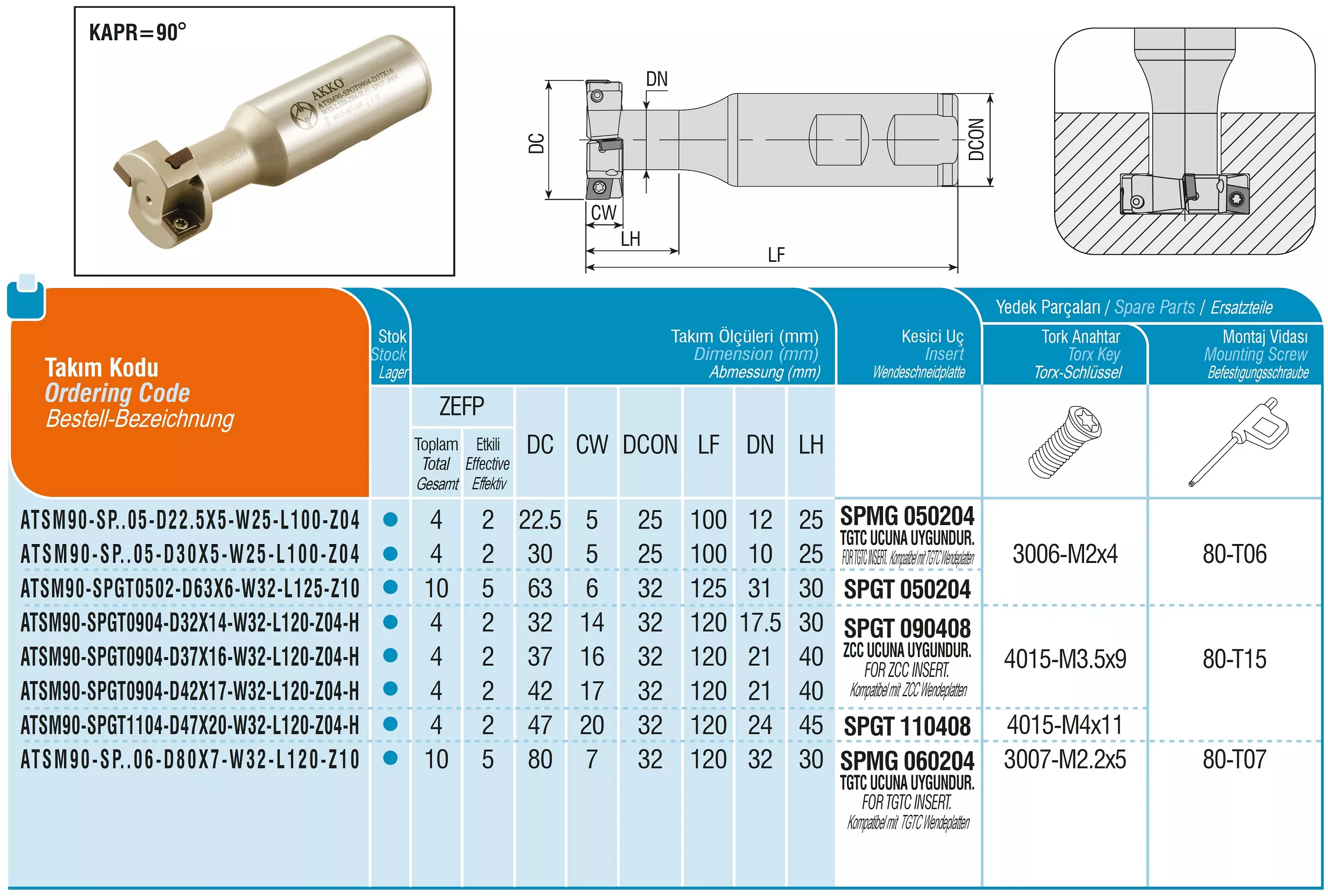 Produktinformationen "AKKO-T-Nuten-Fräser ø 63 mm, Nuthöhe 6 mm, für ISO-WSP SPGT 050204 Schaft-ø 32, Z=10 (Z effektiv = 5)"