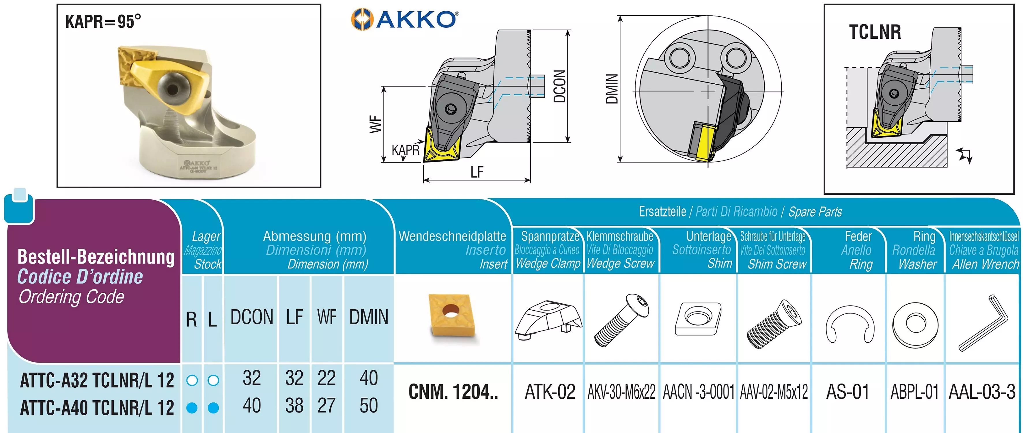 Produktinformationen "AKKO-Wechselkopf für schwingungsgedämpfte Bohrstange, ø = 32 mm, für Wendeplatte CNM. 1204.., mit Innenkühlung, für eine hohe Oberflächenqualität bei großer Auskraglänge, linke Ausführung "