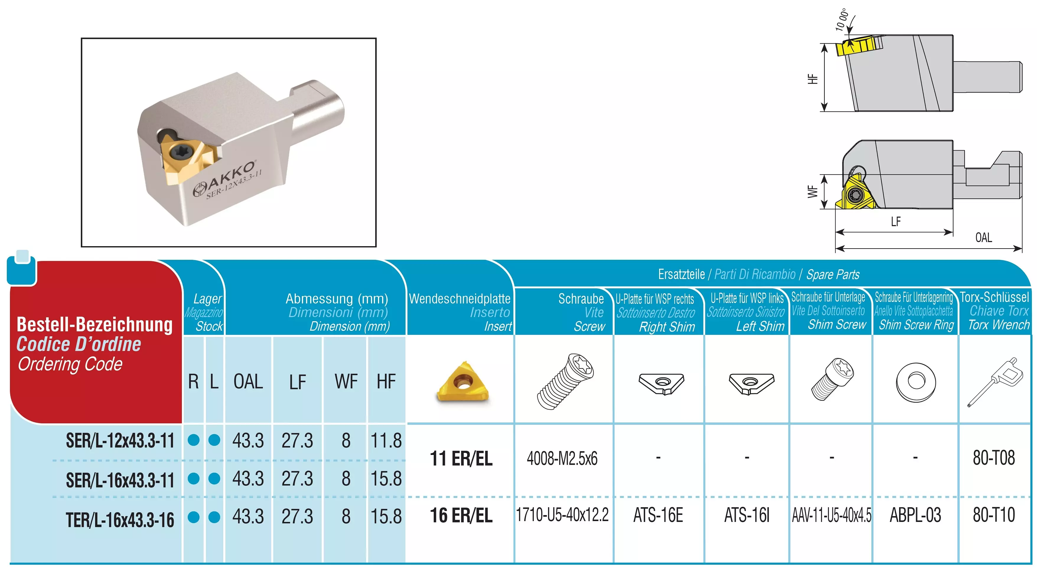 Produktinformationen "AKKO-Wechselkopf Größe 16 für modulares Langdrehautomaten-Werkzeug SEC-tools rechts, für ISO-Gewinde-WSP 11ER, ohne Innenkühlung"