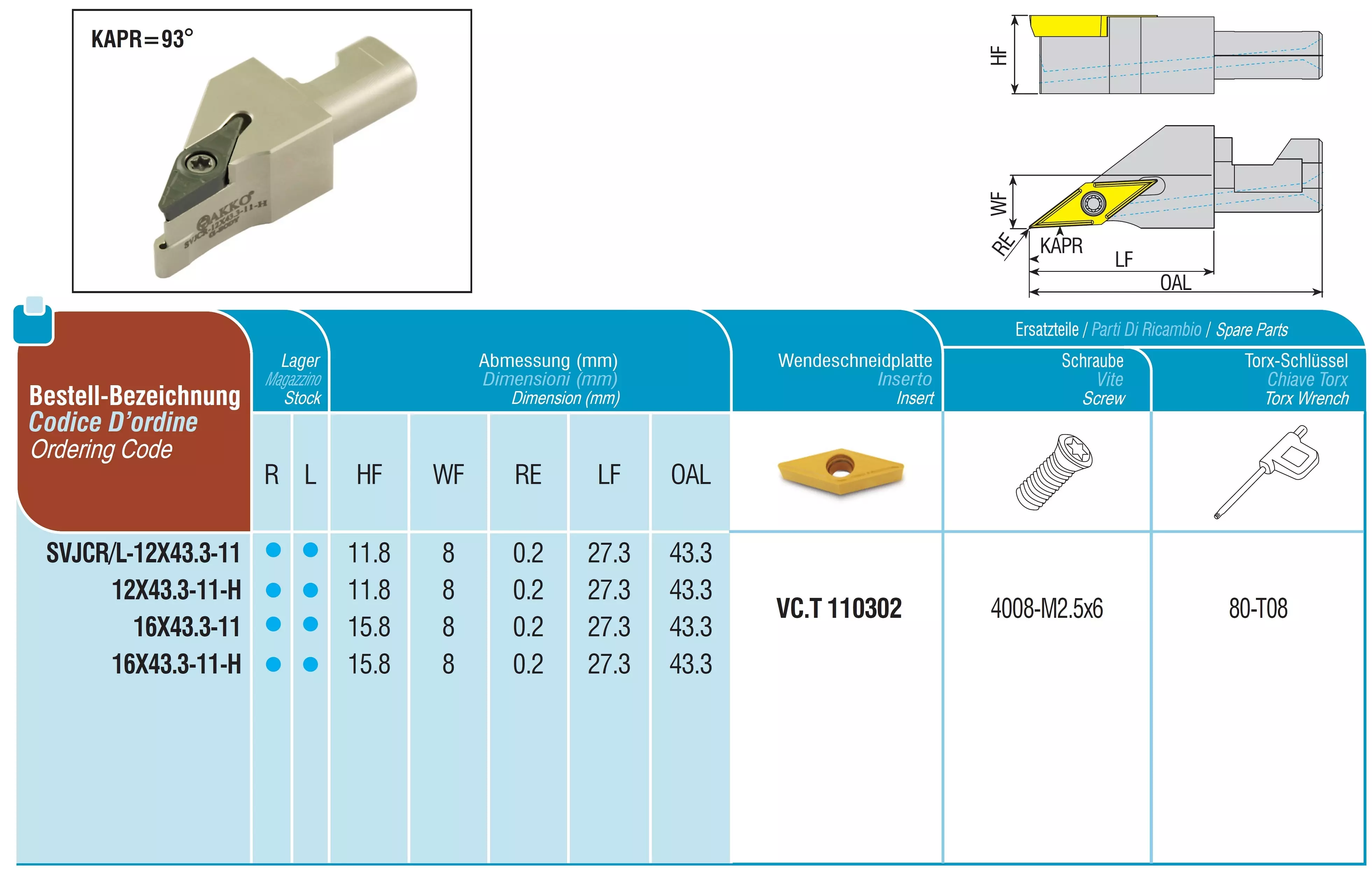 Produktinformationen "AKKO-Wechselkopf Größe 16 für modulares Langdrehautomaten-Werkzeug SEC-tools rechts, für ISO-WSP VC.T 110302, ohne Innenkühlung"