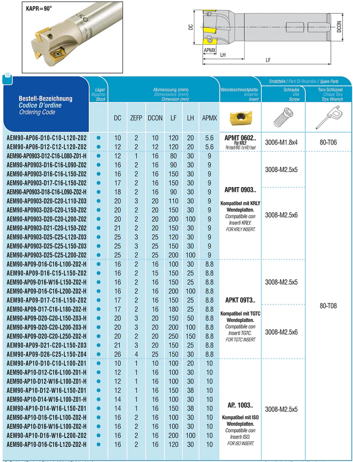 Produktinformationen "AKKO-Wendeplatten-Schaftfräser ø 10 mm, 90°, kompatibel mit ISO AP.. 1003.. Schaft-ø 10, ohne Innenkühlung, Z=1"