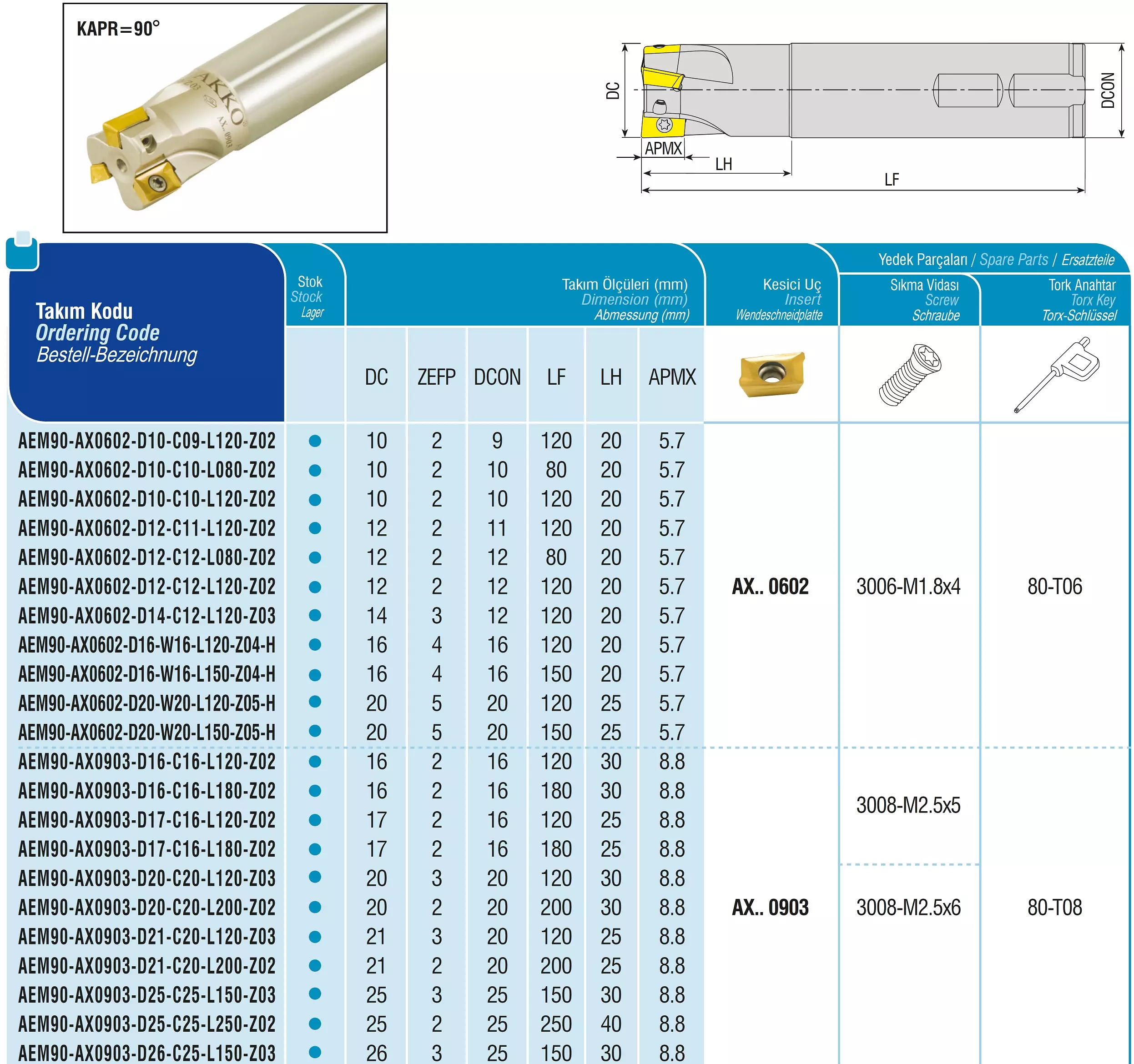 Produktinformationen "AKKO-Wendeplatten-Schaftfräser ø 14 mm, 90°, kompatibel mit Taegutec AX.. 602 Schaft-ø 12, ohne Innenkühlung, Z=3"