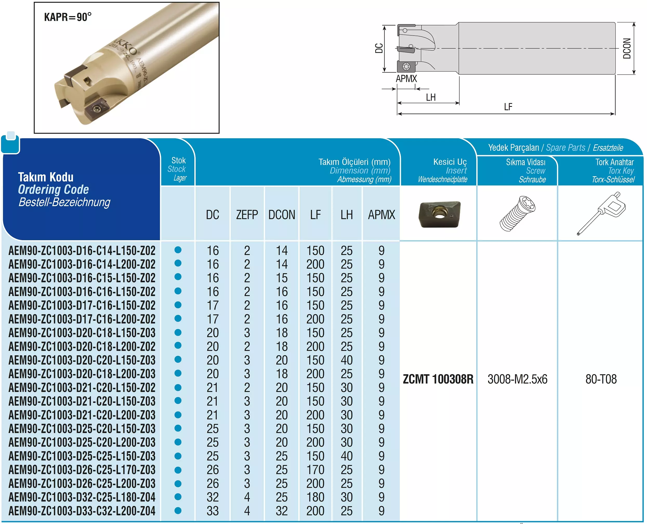 Produktinformationen "AKKO-Wendeplatten-Schaftfräser ø 16 mm, 90°, kompatibel mit Dijet ZCMT 100308R Schaft-ø 15, ohne Innenkühlung, Z=2"