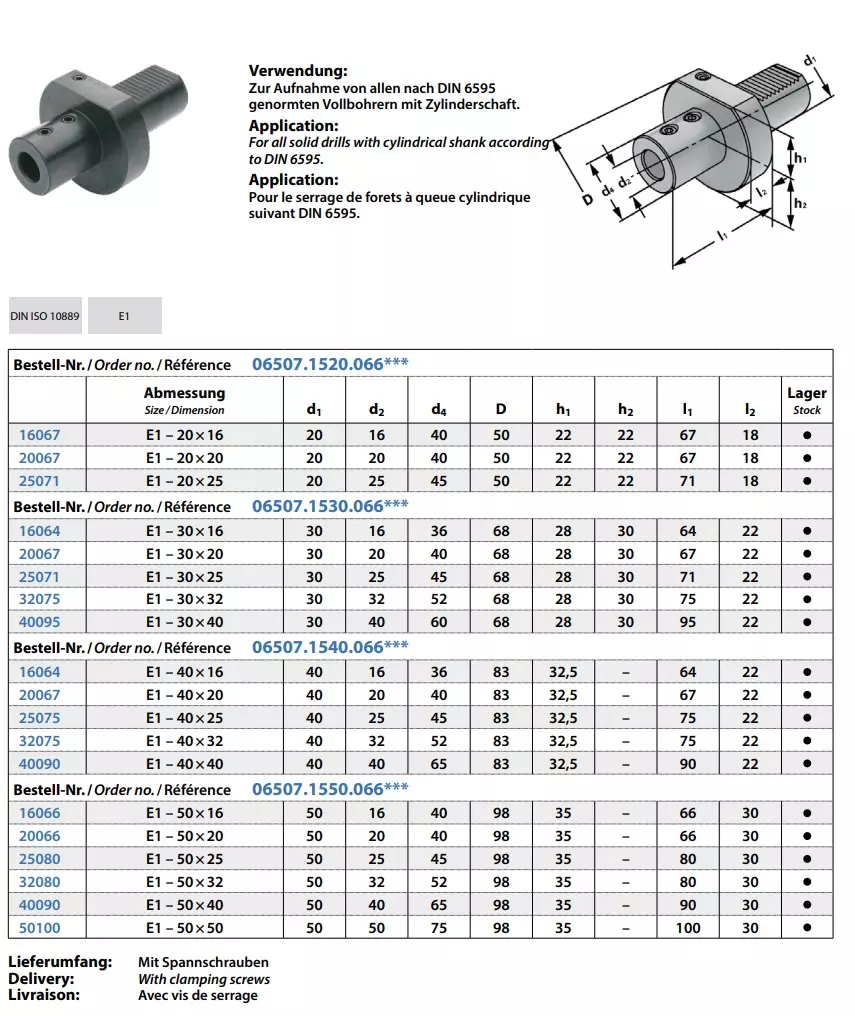 - Zur Aufnahme von allen nach DIN 6595 genormten Vollbohrern mit Zylinderschaft