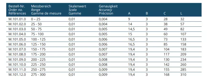 - Ablesung: 0.01mm