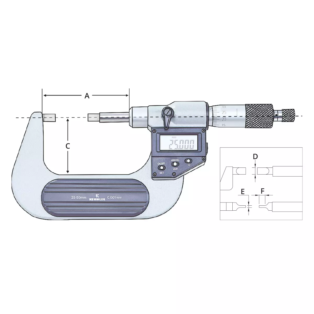 Produktinformationen "Bügelmessschraube zur Nutenmessung IP65 ABS"