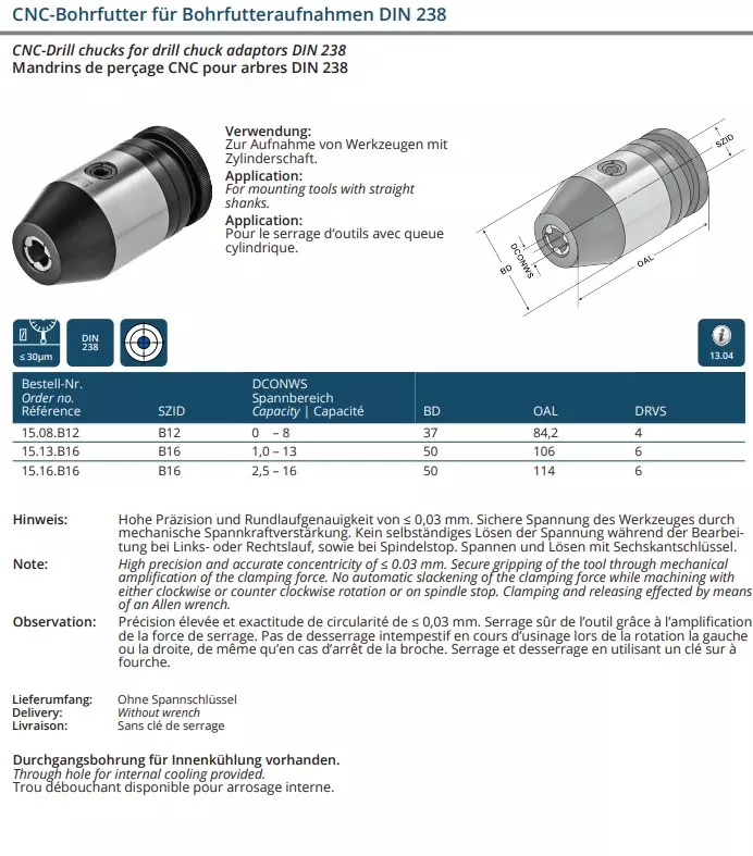 Produktinformationen "CNC-Bohrfutter für Bohrfutteraufnahmen DIN 238"