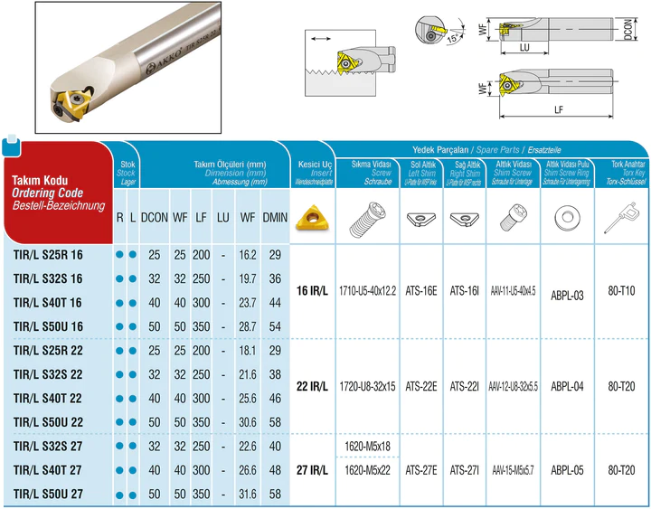 Produktinformationen "Akko-Gewindebohrstange für Wendeplatte 22 IL links, Schaft-ø 40 mm"