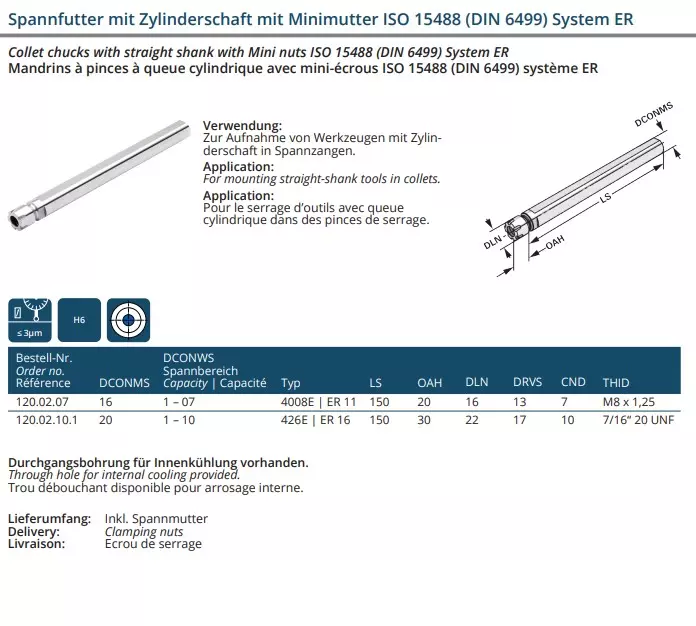 Produktinformationen "Spannfutter mit Zylinderschaft mit Minimutter ISO 15488 (DIN 6499) System ER"