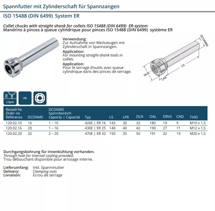 Produktinformationen "Spannfutter mit Zylinderschaft für Spannzangen ISO 15488 (DIN 6499) System ER"