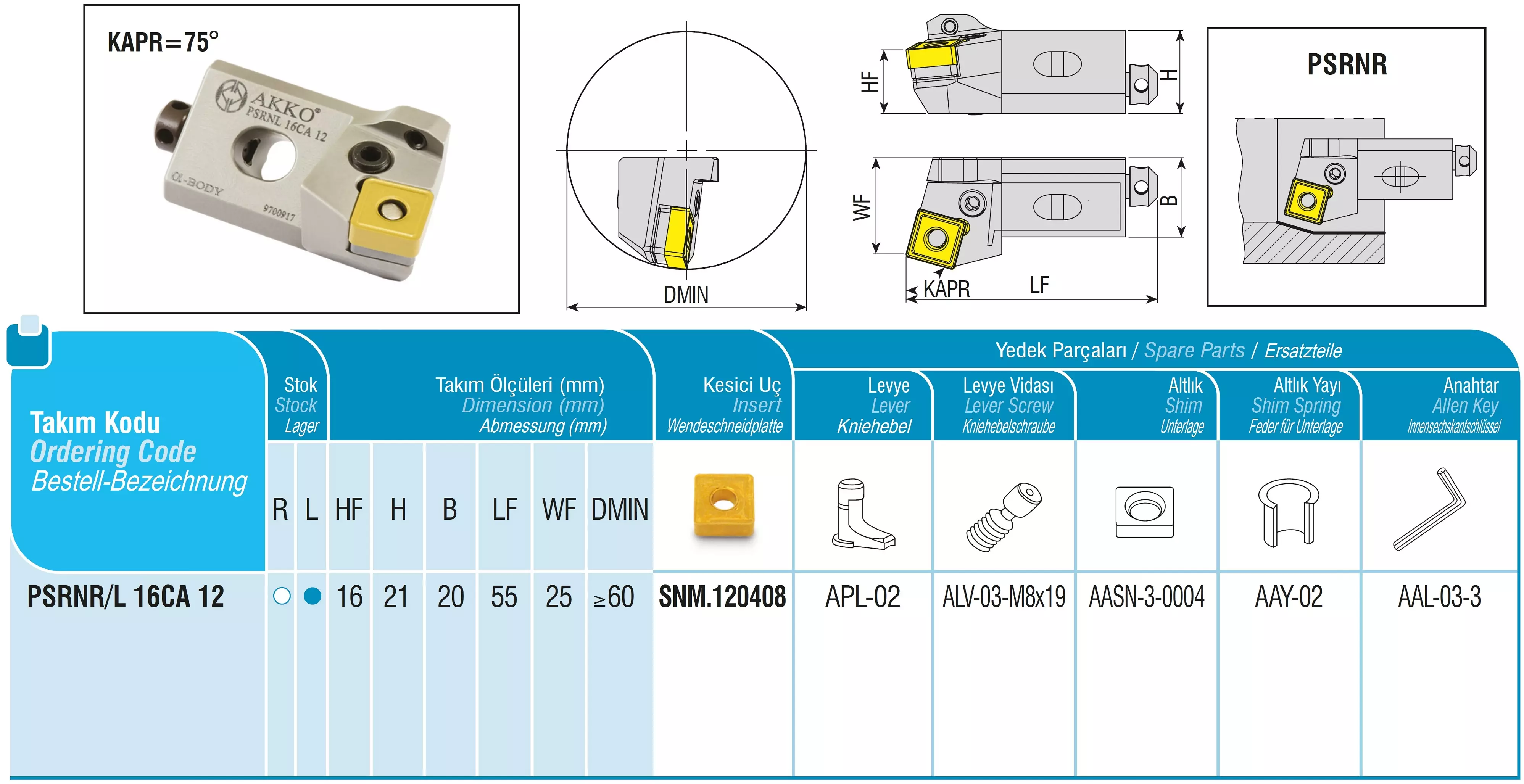 Produktinformationen "AKKO-Kurzdrehhalter für ISO-WSP SNM. 120408 rechts, 75° Anstellwinkel"