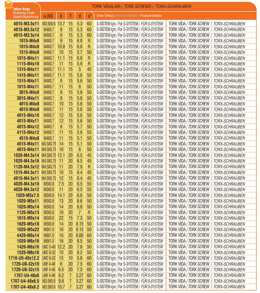 • Torx-Schraube für S-System