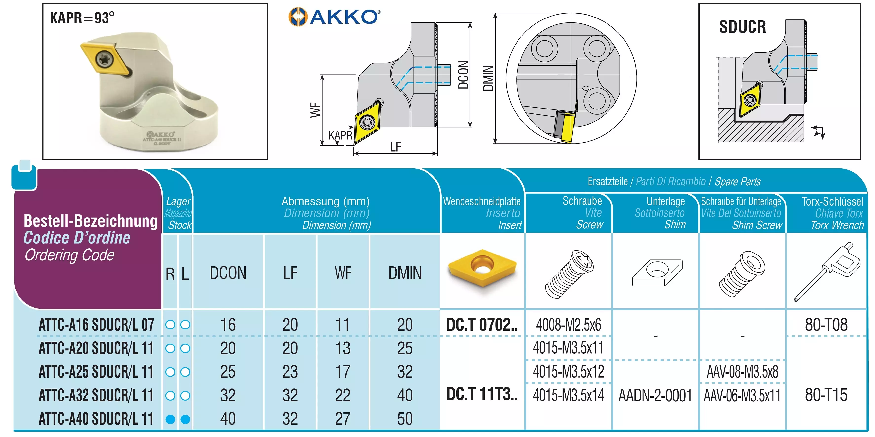 Produktinformationen "AKKO-Wechselkopf für schwingungsgedämpfte Bohrstange, ø = 32 mm, für Wendeplatte DC.T 11T3.., mit Innenkühlung, für eine hohe Oberflächenqualität bei großer Auskraglänge, linke Ausführung "