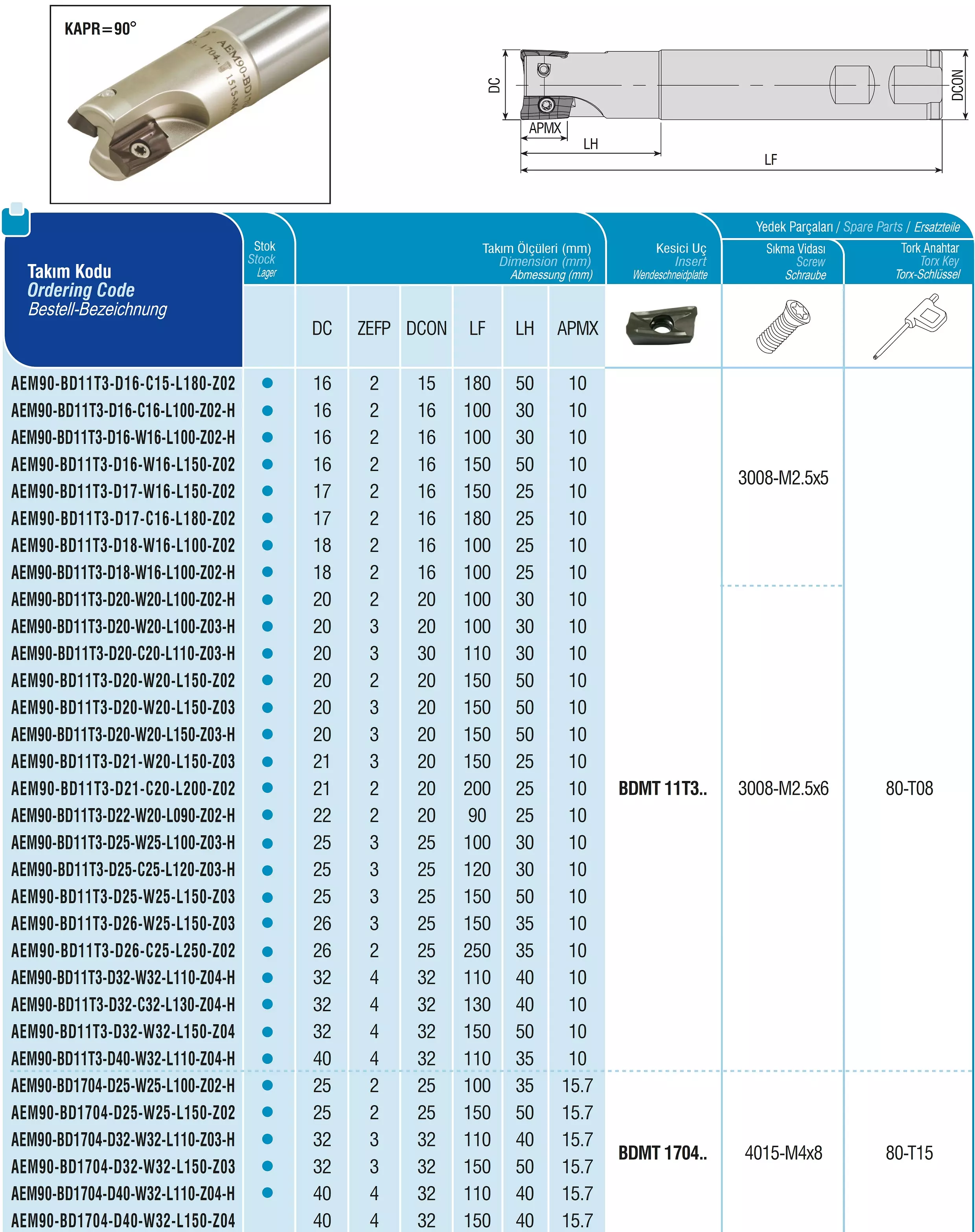 Produktinformationen "AKKO-Wendeplatten-Schaftfräser ø 25 mm, 90°, kompatibel mit Kyocera BDMT 11T3.. Schaft-ø 25, mit Innenkühlung, Z=3"