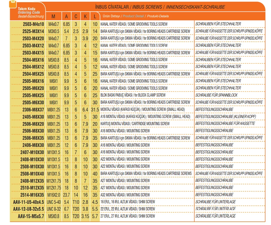 • Innensechskant-Schraube für Kassette der Schrupp-Spindelköpfe