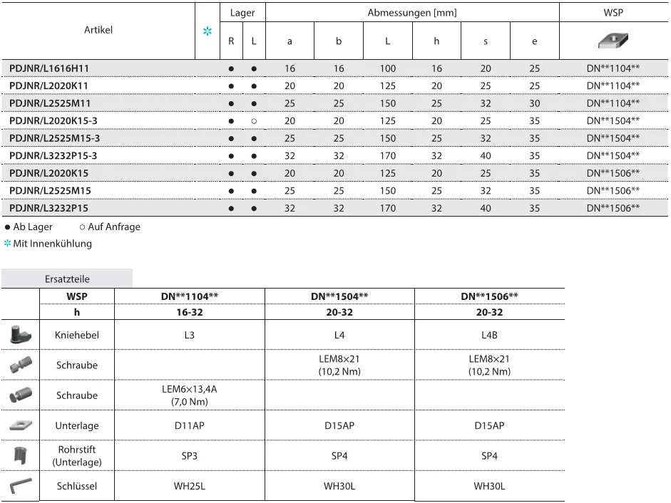 DNMG YB9320 Spanbrecher EG: Doppelseitiger Spanbrecher mit geschliffener Schneidkante und großem Spanwinkel. Breiter Anwendungsbereich in der mittleren Bearbeitung von nichtrostenden Stählen. verschiedene Größen, Ausführungen sowie Radien.Geeignet für Stahl, EdelstahlYB9320 PVD Multilayer beschichtete P10–P30/M10–M25 Hartmetallsorte zum Schlichten bis mittlere Bearbeitung von nichtrostendem Stahl, Superlegierungen und Stahl (Stechen/Fräsen). Sehr gute Verschleißfestigkeit durch verbesserte Schichthaftung und Temperaturbeständigkeit in einem breiten Anwendungsbereich.