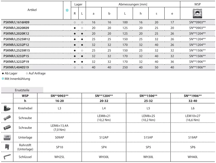 Produktinformationen "PSKNR/L Kr: 75° - SN** Platte"