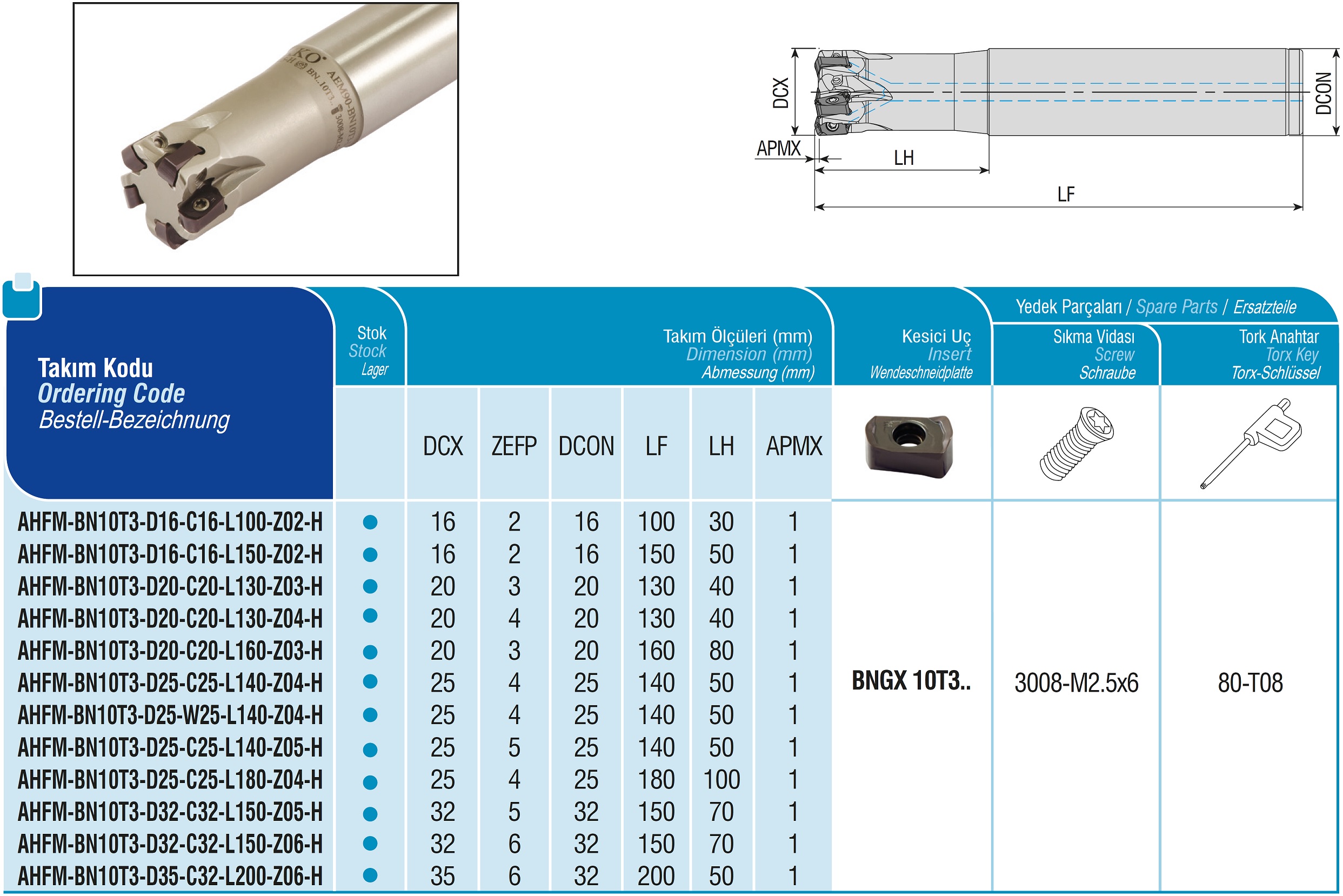 Produktinformationen "AKKO-Hochvorschub-Schaftfräser ø 25 mm für Wendeplatten, kompatibel mit Pramet BNGX 10T3.... Schaft-ø 25, mit Innenkühlung, Z=4"