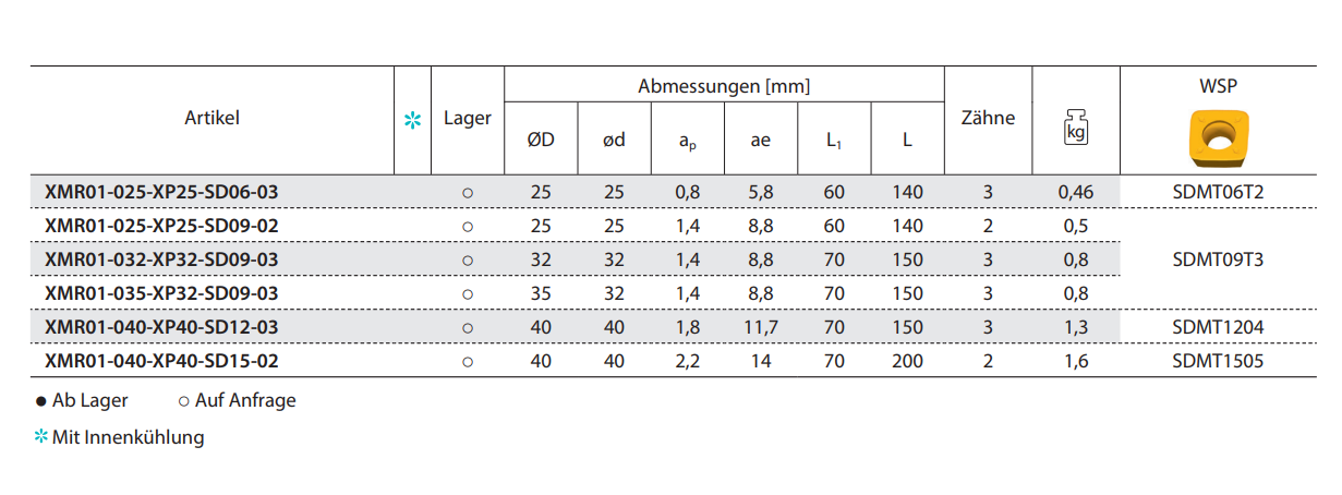 Produktinformationen "Hochvorschubfräser XMR01 Kr: 15°"