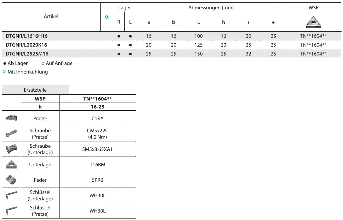 Für Plattentyp Beispiel: TNMG1604..