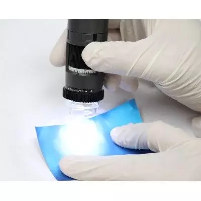 Das Mikroskop ermöglicht präzise Messungen, die über die Software schnell und einfach durchgeführt werden können. Mit der Messfunktion können Linien, Winkel, Radien und Kreise bestimmt werden. Die Messergebnisse und das zugehörige Bild können per Mausklick in Excel exportiert werden, was die Erstellung eines umfassenden Messprotokolls erleichtert. Für genaue und verlässliche Messungen mit Ihrem Mikroskop ist eine sorgfältige Kalibrierung unerlässlich. Mit dem mitgelieferten Kalibriernormal und der einfach zu bedienenden DinoCapture Software kann die Kalibrierung schnell und unkompliziert erfolgen. Die Software führt Sie durch die notwendigen Schritte und garantiert eine genaue und zuverlässige Kalibrierung. Der Polarisationsfilter ist ein unverzichtbares Instrument für die optimale Beleuchtung von Proben. Durch die stufenlose Einstellung des Filters können störende Lichtreflexe auf dem Material reduziert werden. Dies ist besonders wichtig bei der Untersuchung von spiegelnden Oberflächen. Dank des Frontkappensystem des Mikroskops können Sie ohne Frontkappe arbeiten, um eine klare und unverfälschte Sicht auf das zu untersuchende Objekt zu erhalten. Dies erleichtert die Untersuchung und Analyse von Proben erheblich. Dem Mikroskop werden Frontkappen mitgeliefert (können je nach Mikroskop unterschiedlich sein), die einfach hinzugefügt werden können und so eine optimale Anpassung an die jeweilige Anwendung gewährleisten. Durch die Verwendung der Diffuser kann eine besondere Lichtstreuung erzielt werden, die dazu beiträgt, Lichtreflexe zu reduzieren.