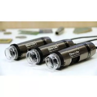 Dino-Lite USB Handmikroskope sind eine Serie verschiedener Mikroskope, die sich per USB an einen Windows Rechner oder Mac PC anschließen lassen. Alternativ zu den reinen USB-Modellen gibt es die Wireless Serie, mit der direkt ein iPhone / iPad angesprochen werden kann. Die enthaltene Software ermöglicht ein schnelles Messen von Oberflächen und Bauteilen. Die Messergebnisse lassen sich direkt in Excel Übertragen. Außerdem lassen sich die Bilder in nahezu jedes Bildformat exportieren und weiter verarbeiten. Mit bis zu 8 Megapixel Auflösung können auch Kleinigkeiten klar und deutlich dargestellt werden. Der verbaute Chipsatz ermöglicht eine ausgesprochen gute Farb- und Bildwiedergabe. Je nach USB Mikroskop können Sie bis zu 900x Vergrößerung erreichen. Der normale Anwendungsfall liegt aber in der Regel zwischen 50x und 230x Vergrößerung. Verschiedene Funktionen runden das Gesamtpaket der Dino-Lite Mikroskope dann ab.