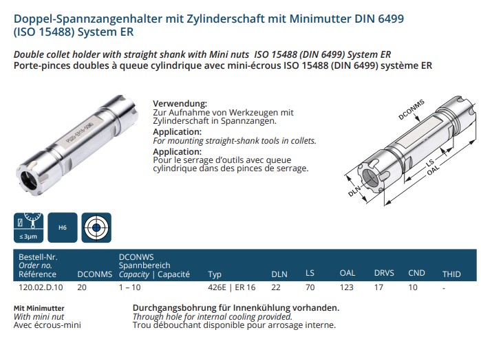 Produktinformationen "Doppel-Spannzangenhalter mit Zylinderschaft mit Minimutter DIN 6499 (ISO 15488) System ER"