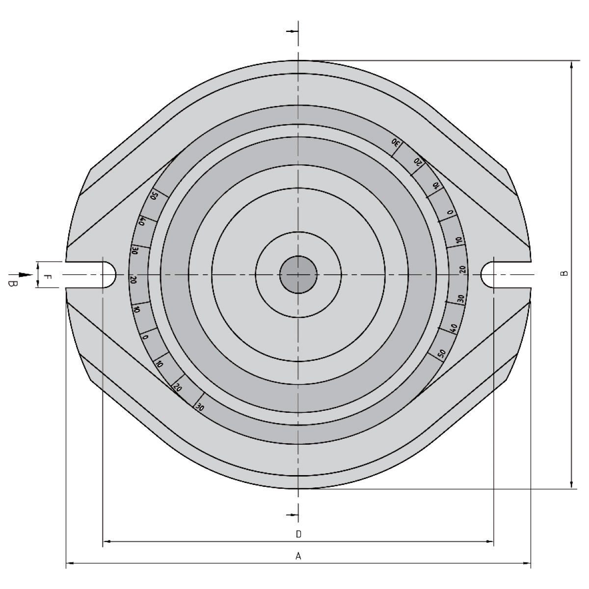 Auflagerand geschliffen, 360° Teilstriche zur Winkeleinstellung.