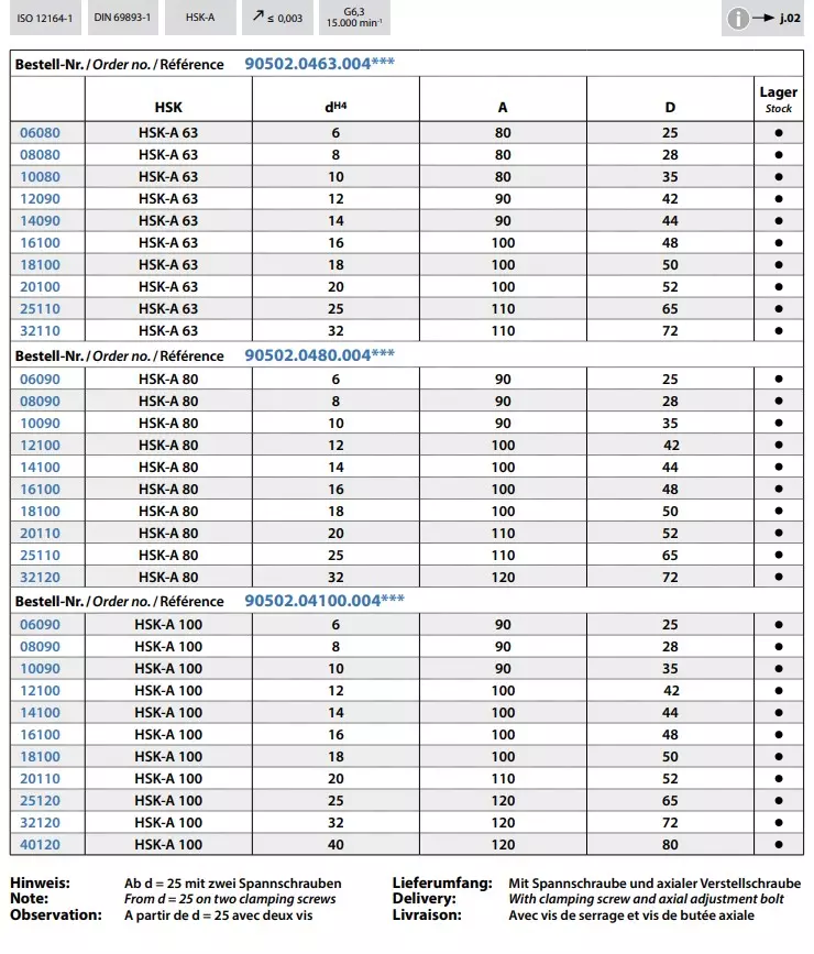 - ISO 12164-1 / DIN 69893-1 / HSK-A / Rundlaufgenauigkeit ≤ 0,003 / G6,3 15.000 min