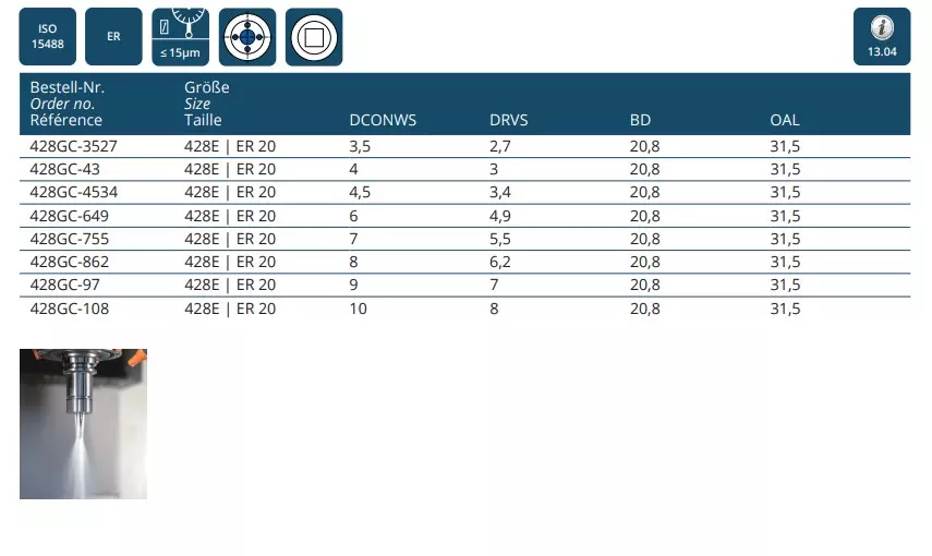 Produktinformationen "Gewindebohrer Spannzangen mit Kühkanalbohrungen| ER System"