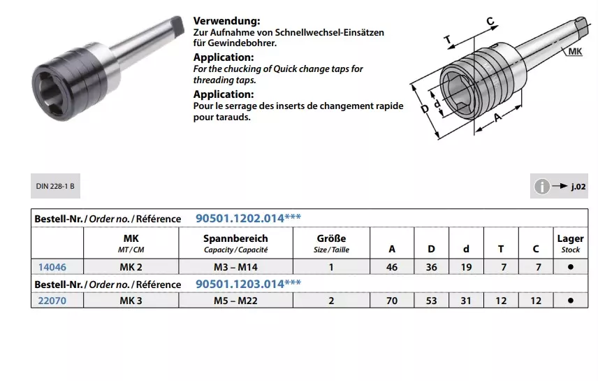 - Zur Aufnahme von Schnellwechsel-Einsätzen für Gewindebohrer