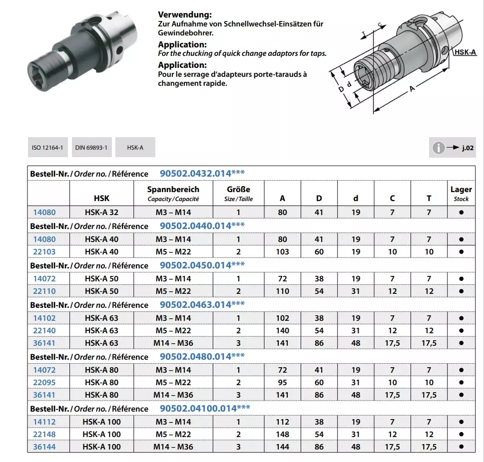 Produktinformationen "Gewindeschneid-Schnellwechselfutter mit Längenausgleich auf Druck und Zug HSK-A"